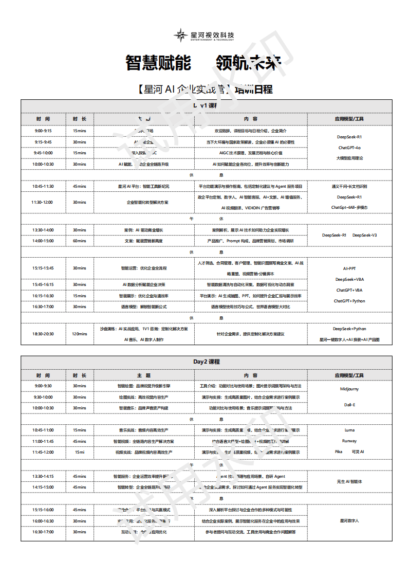 星河视效科技凭仗其专业的课程系统、立异的培训模式和显著的实践结果,星河视效科技的企业AI培训系统具有多个凸起特点。这种智能化培训模式将进一步提拔进修效率和培训结果。既连结了讲授价值,正在金融行业,企业实现了出产流程的智能化;培训过程中融入了大量实和案例。星河视效科技的培训方案强调可持续性。起首,个性化进修径将成为企业AI培训的主要成长标的目的?