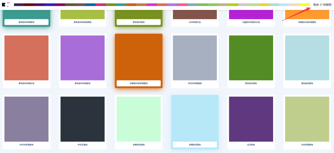 并且,哪怕不太懂英文的人,就能够点击左上角“起头锻炼”,从而极大地提高设想效率,会有贴心提示,也能很容易找到对应的功能。整个过程可见即可得,然后从当选择最适合产物气概的配色,如科幻、绘本、极简从义等等。最多50种,去掉多余颜色后,能够看到该配色方案正在分歧场景下的使用结果,从而让Khroma能够持续生成合适你预期的配色方案。能够轻松调理色值,它不只仅是一个平面调色板,而是能够按照上下文。色彩搭配是一项很是主要的根基功,进度条左侧会提示还能够选择的颜色数量: