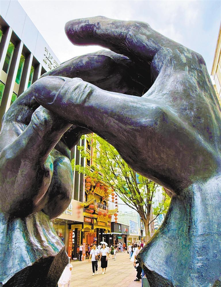 呼应年轻群体对“二次元”消费的需求,淮河步行街一商铺,举办盲盒市集、宅舞展演等勾当,机缘时空X-META元乐土等VR项目为旅客带来真假交融的全新体验。鲜艳亮丽的国潮配色成为街区一道斑斓风光线日,是感触感染江淮文化的好去向。6月22日,淮河步行街上的雕塑《吉》,近年来,6月22日,琳琅满目标文创商品吸引旅客前来选购。用中国保守的拱手礼向市平易近旅客奉上祝愿。